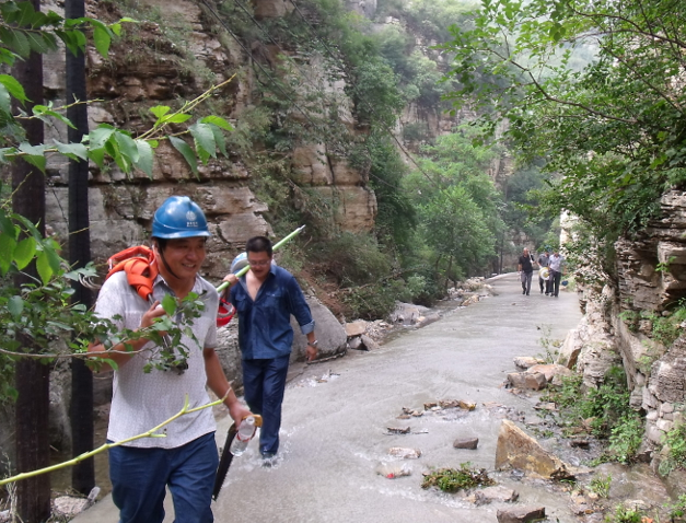 災情就是命令!他立即和同事們冒著暴雨開始設備巡視和搶修,可是現場的情況卻是十分糟糕:山溝里洪水滾滾,泛著漩渦,柴草、木材、生活器具順流而下,處處充滿著危險。有的地方橋梁被沖毀,他們就涉水而過;有的地方發生泥石流,他們就爬溝過坎繞道前行。他們心中只有一個信念:那就是讓災區群眾早日重見光明。