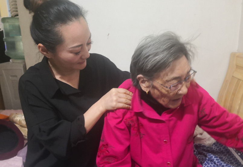 2011年12月20日那天,公公突然病危,她坐在公公的床前,緊緊握著公公的手,當時公公的意識特別的清醒,雖然已經說不出話了,但還是“啊、啊”的自己要衣服穿,當衣服穿好了,公公的嘴巴張了張就永遠地閉上了眼睛,走得非常安祥。