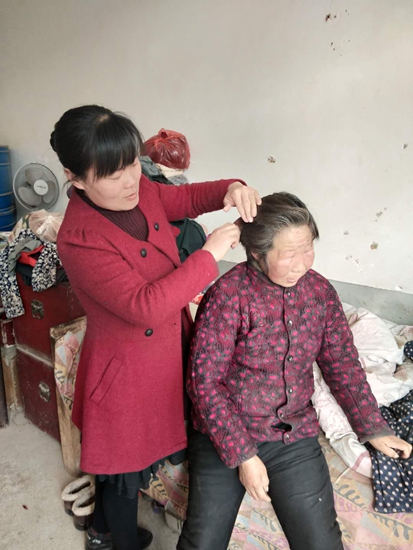 在面對記者采訪時,秦四美說出了當時留下來的另外一個原因。她說:“對象沒有去世時,我跟他感情很好,他很體貼細心,對我也很關心,所以于情于理我必須得留下來。”給婆婆洗衣做飯,洗澡理發梳頭,她像照顧孩子一樣照顧婆婆,像女兒一樣不離不棄的照顧婆婆。在村民眼里,秦四美是一個孝順的好兒媳,好女兒,說起她,沒有人不為她豎起大拇指、不肅然起敬的。