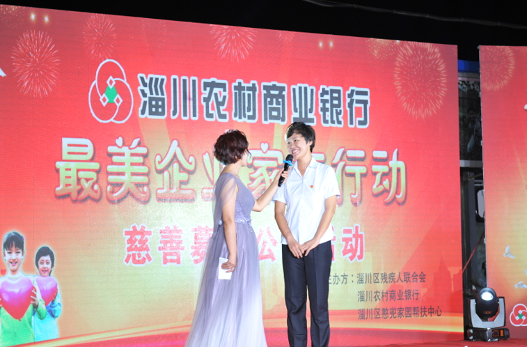 為了讓更多的人了解、關心、幫助這群孩子,她積極爭取行領導支持2018年7月20日,她組織舉辦了淄川農村商業銀行“最美企業家在行動”慈善募捐公益活動,向到場的愛心人士介紹孩子們的工藝品,當晚就為孩子們募集善款近18萬元。