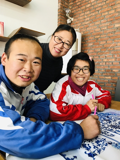 李彤說:“就我個人來說,在家里也可以把孩子養好,但是‘養’和‘活’不一樣,我們希望這些特殊的孩子能夠活得更有價值、更有意義。”憨兜家園為心智障礙殘疾人士提供康復就業機會,幫助他們自食其力融入社會,實現自身價值,同時減輕殘疾人及其家庭的負擔,解決殘疾人家庭因病致貧、因病返貧等問題。兩年多來,已為30名心智障礙者找到“家”,開展各類活動30余場次,服務人群1000余人次,社會效益初步顯現。家園邀請區畫協、文聯、文化館等專家學者,在多功能活動室教孩子們制作鉆石畫、手工牛扎糖、手工串珠、十字繡,開展口風琴、電子琴、打擊樂、乒乓球、繪畫、書法、唱歌、滑輪等文化培訓,寓教于樂,寓勞于樂,讓孩子們的藝術潛能得到全面激發。孩子們創作的書畫、十字繡等作品色彩明艷、主題鮮明,充分展現了孩子們陽光健康的心態;一些孩子創作的作品得到專業人士的高度肯定,認為具有很高的藝術價值和發展空間,提升了孩子的信心;家園還探索“憨兜家園洗車行”連鎖經營店,目前已建立了3處憨兜洗車店,積極打造一個殘疾人洗車品牌,孵化培訓更多的殘疾人就業。優化的環境,科學的管理,使在憨兜家園生活的孩子們身心都發生了顯著變化,在最近的一次查體中,80%以上的孩子心電圖都接近了正常值。
