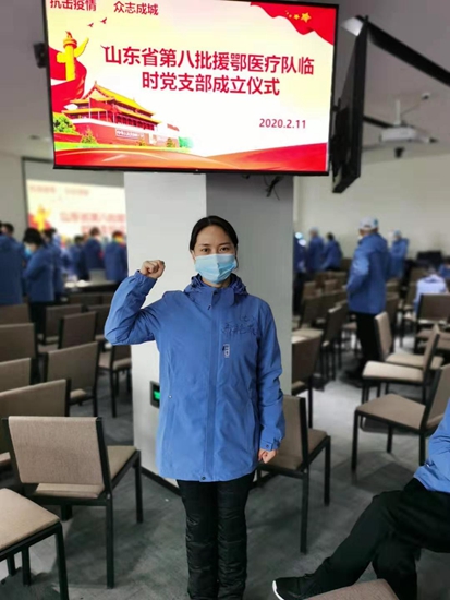 2月9日晚,耿艷菲順利抵達湖北武漢江漢區,經過三天的防控知識培訓后,她在山東省第八批援鄂醫療隊臨時黨支部成立儀式上,面對黨旗鄭重宣誓:充分發揮黨員先鋒模范作用,堅決打贏疫情防控阻擊戰。為了降低感染風險,耿艷菲剪去了長發,“要上戰場了,戰士就該有戰士的模樣!”她被分配到武漢市漢陽方艙醫院護理七組,擔任副組長,指導組員的穿脫防護服工作,2月13日凌晨進艙開展醫療服務。耿艷菲所在的小組共13名醫護人員,她自己分管了九十多個病人。每天接班后,耿艷菲總是要仔細巡視病床,觀察患者有無缺氧情況,定時檢測記錄體溫,確保每一名患者安全。除了專業的救治和生活上的照料外,給患者精神和心理上安慰也是此次援鄂醫療工作一部分,為了讓患者放松心情,幫助患者更好康復,在方艙醫院里,耿艷菲帶領患者跳呼吸操、洗手操、健康操等,還和患者一起唱歌,在強身健體的同時,讓他們用積極的態度去面對生活。因為醫療防護物資緊缺,為節省時間、節約使用防護設備,耿艷菲竭力控制飲食,穿上紙尿褲,克服困難,全身心投入工作。