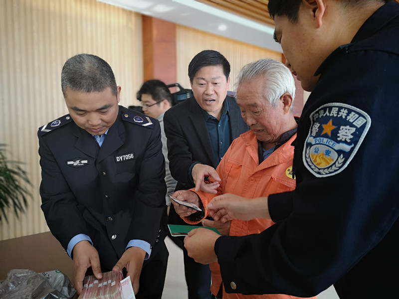 在民警的幫助下,11月12日上午10時許,失主老先生幾經(jīng)周折,顫顫巍巍地來到了勝利派出所。老先生焦急地述說著當(dāng)天的經(jīng)過。經(jīng)過核實(shí),民警確認(rèn)了駕駛員燕增鵬撿到的袋子,正是這位八旬老人所丟。民警為老人清點(diǎn)了錢款,連同袋子里的物品一并整理好,送還到了老人手中。當(dāng)?shù)弥X是由燕增鵬撿到并送到派出所時,老人激動地握著燕增鵬的手,嘴里不停地說著“謝謝,謝謝”。