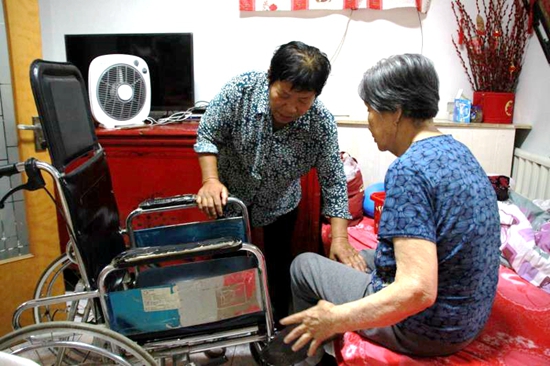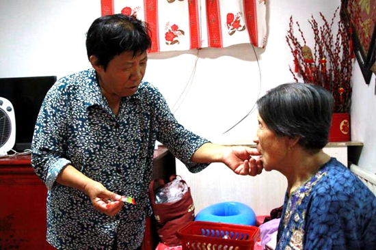 6年前,婆婆安玉桂患上了腦血栓,患病第二天不小心跌了一跤,把右腿骨頭跌壞了,從此就再也不能自己下地走過,只能坐輪椅,彼時的崔合倫也患了直腸癌,動了一場大手術,腹部造瘺掛袋,兩天一換,十分遭罪,身體也大不如以前,再加上家里還有98歲的老母親需要照顧,崔合倫仍然沒有拋棄自己的婆婆,侍奉婆婆穿衣吃飯,端屎端尿。看著崔合倫那么累,婆婆也很是心疼,實在是不忍心兒媳這么辛苦,主動提出去閨女家住幾天,讓媳婦也好好休息休息。可是沒多久,崔合倫就又把婆婆接回家來照顧。“俺跟俺婆婆就跟親媽一樣,跟小姑子們也像親姐妹一樣好。”崔合倫說,現(xiàn)在和小姑子們一起輪流照顧,但是婆婆還是喜歡在自己家,與她“母女”兩個相伴。