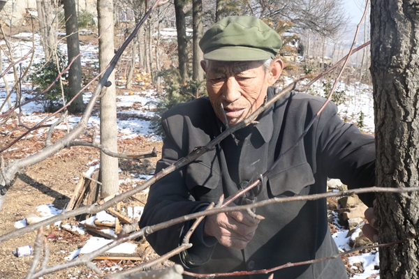 今年79歲的胡彥秋,無論春夏秋冬,寒來暑往,每天早晨五點半起床,扛起鋤頭,便開始了一天的勞作。沒有錢買米面,每天他就吃煎餅、干饅頭,喝開水,攢下力氣再將力氣傾灑在樹苗上。