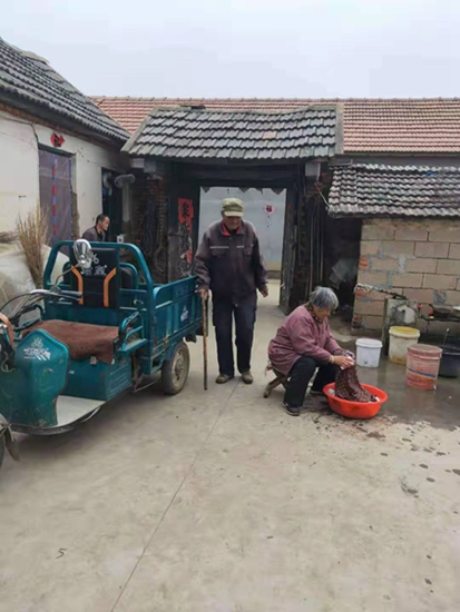 唐秀鳳的婆婆生養了12個孩子,12個孩子中3個男孩,9個女孩,唐秀鳳的丈夫在兄弟中排行老大,二弟因為家里貧困,年輕時去了東北討生活,其他姐妹各自成家后,照顧家里的責任也就落在唐秀鳳一家身上。早年的時候,唐秀鳳的婆婆和“三兒”住在老屋,因為家里有十三畝地需要耕種,平日里她都是把吃的送到老屋。而隨著時間推移,婆婆年老體弱,老屋也年久失修,唐秀鳳就把婆婆跟小叔子接到自己家住,“不就多添個碗添雙筷子,養得起”,唐秀鳳絲毫沒有猶豫,把照顧的活都攬了過來。然而,唐秀鳳自己有三個孩子,再加上婆婆和小叔子,一家七口人的生活重擔都壓在夫妻二人的肩上,僅靠種地的收入,日子其實過的很拮據。對于他家的特殊情況,村里每年給予補助五百斤糧食,后來國家出臺相關的幫扶政策,村里給小叔子辦了低保和殘疾人證,現在一年也能拿到將近八千塊錢。“以前家里窮能養的起,現在條件好了更要照顧好”唐秀鳳說。