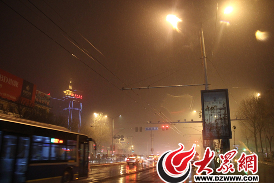 今天晚上9點(diǎn)半,濟(jì)南市區(qū)的降雪仍在持續(xù)