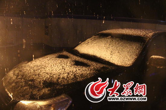 濟(jì)南街頭停放的汽車上落上了一層白雪