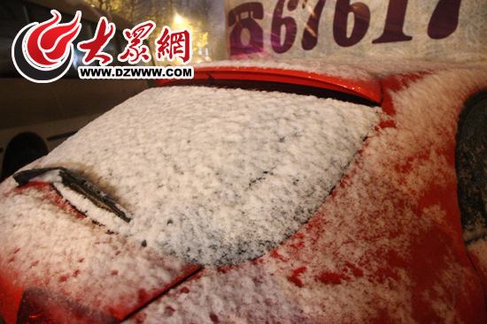 今晚9點(diǎn)半,在平日里交通繁忙的濼源大街和歷山路路段,街上的車流量明顯少于平時(shí)。而街上為數(shù)不多的幾位行人,也都撐著傘,低頭匆匆趕路。大眾網(wǎng)記者發(fā)現(xiàn),經(jīng)過近4個(gè)小時(shí)的降雪,街頭兩旁停放的車輛上已經(jīng)落上了一層積雪。在機(jī)動(dòng)車道上,由于車輛的反復(fù)碾壓,讓飄落在路面上的雪花迅速融化,化為水滴。而在人行道上,則出現(xiàn)了比較明顯的積雪。