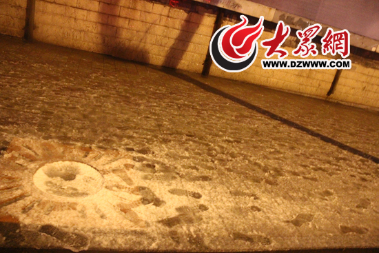 濟(jì)南街頭人行道出現(xiàn)積雪 市民出門注意防滑
