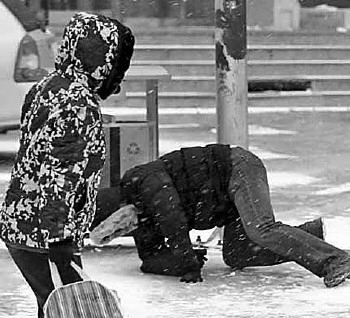 雨雪天氣摔倒時,年輕人容易拉傷韌帶。 (資料片)