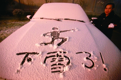 昨日,省城一位市民在雪后車上畫(huà)了“航母Style”的標(biāo)志性動(dòng)作記者鄭濤攝
