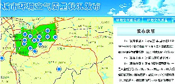第四步:在這個(gè)網(wǎng)頁上,地圖的左邊是一個(gè)發(fā)布說明。請(qǐng)注意“發(fā)布說明”上方還有兩個(gè)藍(lán)底白字的圖標(biāo),分別是“環(huán)境空氣能見度”和“環(huán)境空氣質(zhì)量”。