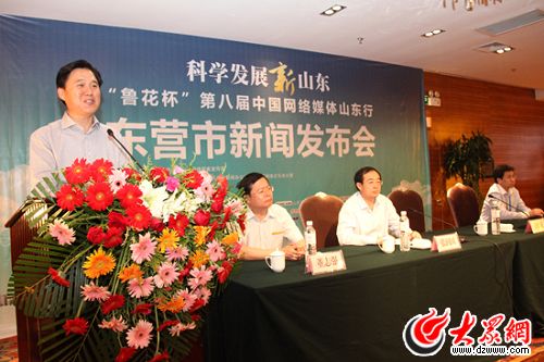 [提要] 14日晚,科學發展新山東——“魯花杯”第八屆中國網絡媒體山東行東營站舉行了新聞發布會。東營市人民政府副市長楊夢斌在致辭中表示,今后東營市將加大在生態保護、經濟轉型、生態經濟、城市建設等方面的投入,把東營打造成一個經濟繁榮發達、城市秀美宜居、社會文明和諧、人民富裕幸福的生態文明典范城。