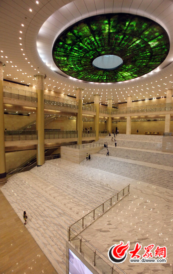 省會文化藝術中心的場館群中, 大劇院作為主場館是重中之重。據介紹,大劇院采用“岱青海藍”的設計理念,明確地勾勒出山東靠山近水的地理景觀及孔孟之鄉的文化環境。“岱青”取意泰山,代表了齊魯人民自強不息、厚德載物、勤謹睿智的優秀精神。“海藍”象征著山東充分利用沿海地理位置,大力發展經濟,努力打造山東半島藍色經濟區的美好暢想。