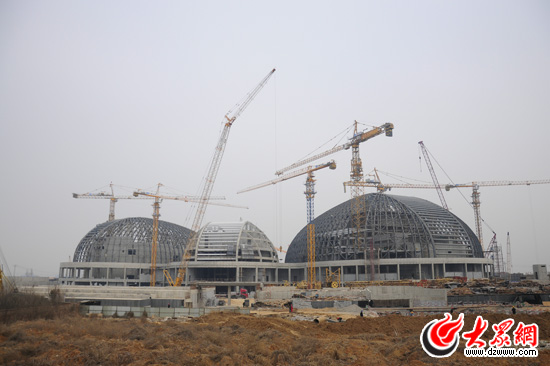 據了解,省會文化藝術中心工程位于濟南西客站片區核心區內,東起臘山河東路,西至臘山河西路,南起站前路,北至濟西東路,距京滬高鐵濟南西客站主站房約1.3公里,項目占地面積480畝,總建筑面積62.5萬平方米,總投資約56.5億元。