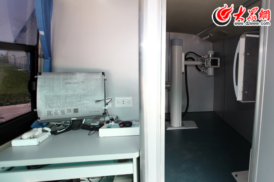 除了令人贊不絕口的高性能校車,在中通汽車工業集團的院內,還停靠著各種型號、各種用途的新產品,有垃圾處理車、軍用體檢車、多功能急救車、新能源公交車……,在眾多新型產品中,有一輛被稱作“流動醫院”的汽車引起了記者的注意。從外面看,它與普通的長途客車并無差別,但進入車廂內映入記者眼簾的則是牙科床、胸透室、聽力檢測室、血液檢測和尿液檢測設備等等醫療器械。