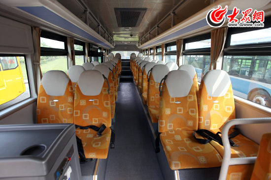 中通客車生產的新能源汽車車廂內部。(盛堃 攝影)