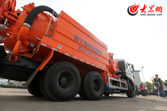 中通客車公司生產的地下管網疏通車較以往車型工作效率提高了數倍以上。(盛堃 攝影)