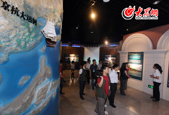 采訪團記者參觀中國運河博物館。(盛堃 攝影)