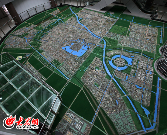 中國運河博物館一層的聊城城市規劃沙盤。(盛堃 攝影)