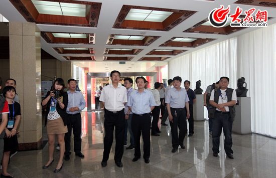 采訪團領導和記者一同參觀中國阿膠博物館。(盛堃 攝影)
