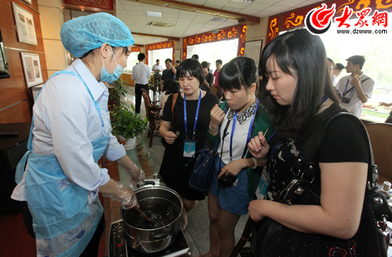 今天上午,科學發展新山東——“魯花杯”第八屆中國網絡媒體山東行西線采訪團走進中國阿膠博物館。(盛堃 攝影)