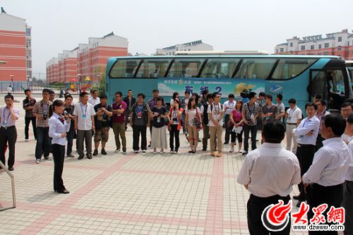 媒體行采訪團東線記者前往萊蕪市雍和園社區采訪。(馬鑫 攝)