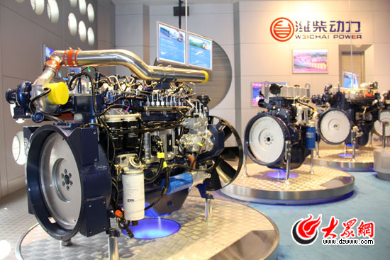 走進濰柴集團的高新產業園科技展館,一臺臺發動機顯示著濰柴動力自主創新的實力。講解員陳真指著一臺綻放著肽藍色光芒的“藍擎”WP12發動機說,這臺高速大功率“藍擎”發動機達到國Ⅴ排放標準,在經濟性、可靠性、環保性等方面均達到了國際領先水平,它也是中國首臺擁有完全自主知識產權的大功率歐Ⅲ發動機。