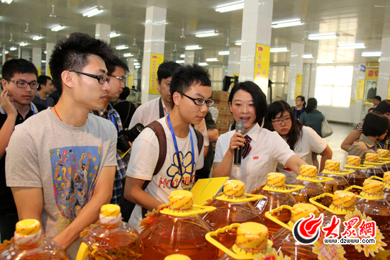 科學發展新山東——“魯花杯”第八屆中國網絡媒體山東行采訪團走進魯花集團參觀采訪。 (馬鑫 攝)