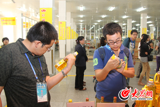 魯花5S壓榨花生油成為記者們關注的焦點。(馬鑫 攝)
