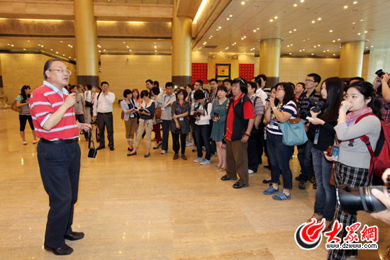 13日下午,“科學發展新山東——魯花杯第八屆網絡媒體山東行”采訪團一行來到山東省博物館。(盛堃 攝影)