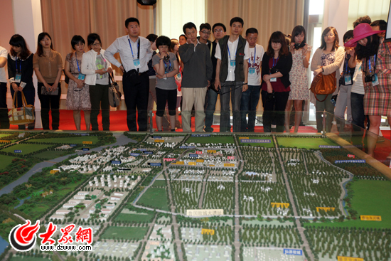 采訪團記者參觀沙盤。(盛堃 攝影)