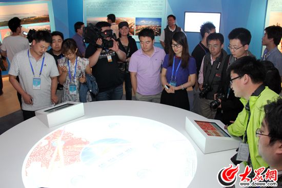 大眾網煙臺5月17日訊(記者 馬鑫)17日下午,科學發展新山東——“魯花杯”第八屆中國網絡媒體山東行東線采訪團一行來到海陽市亞沙會展覽館進行采訪。亞沙會的申辦歷程、美麗的海陽風光,文化與體育完美融合的亞沙會展覽館用一幅幅照片、一段段視頻、一件件模型為在場的記者們勾勒出海陽未來的美好景象。