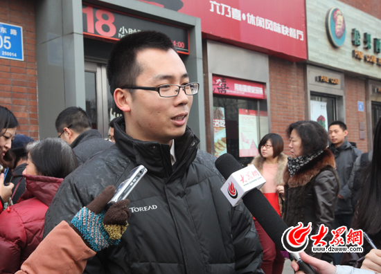 為了獻一份愛心,凌律師特意坐車從舜耕山莊來到了文化東路,下午2點就等在了六乃喜門口。“我在微博上私信@大眾網了,不過怕來晚了買不到,還是自己跑一趟。”他說,最初知道“山貨大爺”是通過微博,這次是從@大眾網 上看到大眾網發布的“山貨團購”愛心活動。“我覺得這活動十分好,就想過來支持一下‘山貨大爺’。正好今天下午有時間,就趕過來了。”