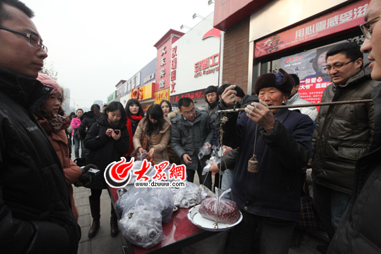27日,大眾網(wǎng)記者驅(qū)車(chē)進(jìn)山,將“山貨大爺”楊洪義老人和他手工制作的柿餅、黑軟棗、山楂片、酸棗、紅姑娘、花椒等300多斤地道山貨,拉到了文化東路六乃喜快餐店門(mén)前現(xiàn)場(chǎng)銷(xiāo)售,近百名市民和網(wǎng)友來(lái)到現(xiàn)場(chǎng)搶購(gòu)。