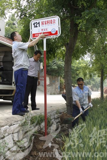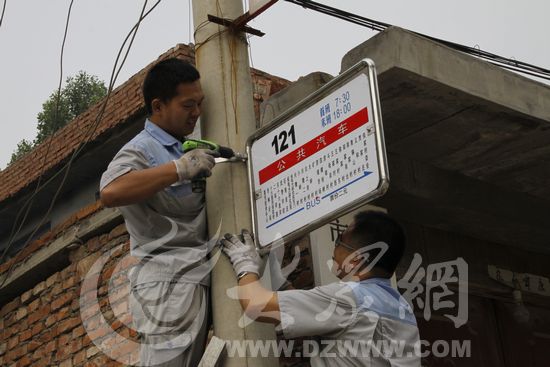 今天中午,隨著侯家村委會(huì)的站牌安裝在了侯家村村口,121路公交沿線的28個(gè)站點(diǎn)的公交站牌安裝完畢。記者 張帆 攝