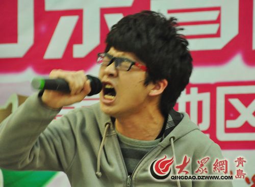 10日上午,盡管天氣寒冷,但選手們熱情高漲。不少網友提前幾個小時來到比賽現場,一遍遍認真地反復練習自己的參賽歌曲,更有網友從合肥坐了十多個小時的火車趕來青島參加比賽。