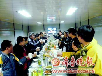 除夕年夜飯,地鐵工作人員相聚在一起,舉杯歡慶。