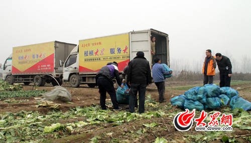 大眾報業(yè)(集團)發(fā)行有限公司的汽車在地頭裝運白菜