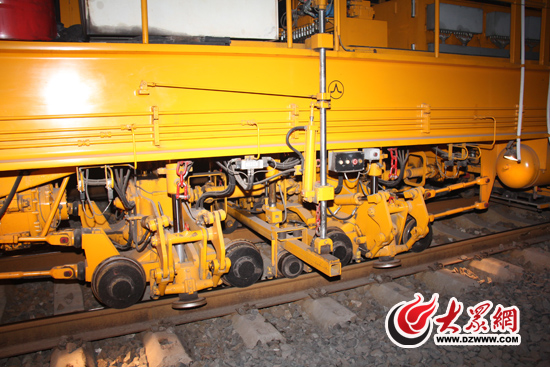 大眾網記者跟隨濟南鐵路局工務機械段的20多名維修工走上月臺。此時,鐵軌上,一組50多米長的維修機車正靜臥在膠濟鐵路客運專線上,等待我們的到來。