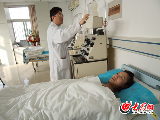 醫生在為呂明玉做淋巴性干細胞懸液采集