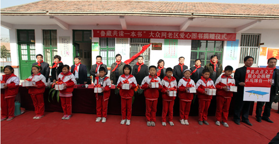 自從今年10月份起,大眾網精心策劃,積極組織愛心單位和企業,決定在山東沂蒙革命老區和西藏日喀則地區的中小學校中,依次組織開展“魯藏孩子共讀一本書”大型愛心圖書室援建活動。今天落成的劉莊鎮中心小學愛心圖書室,是這次活動籌建的第一個愛心圖書室。本次愛心援建活動共籌得價值6.5萬元的愛心圖書3000冊, 西藏地區的愛心圖書室募捐活動已經結束,西藏地區愛心圖書室也將擇日落成。