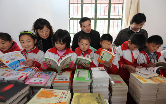[提要] “書香飄逸,情滿校園”。今天上午,剛剛落成的臨沂市費縣劉莊鎮明德小學大眾網愛心圖書室內到處洋溢著學生們的歡快笑聲,由大眾網和山東人民出版社倡議發起,山東信誠人壽保險公司愛心支持的“魯藏孩子共讀一本書”活動在臨沂市費縣正式啟動,愛心活動籌得的價值6.5萬元的3000冊愛心圖書全部捐贈給劉莊鎮明德小學。