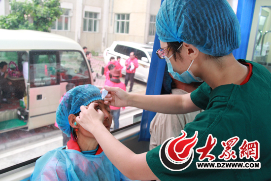 “不害怕,一點都不緊張。”穿上手術服,帶上頭套,次旺卓嘎通過翻譯告訴記者。而此時守在手術車外的次旺卓嘎的丈夫卻不斷的伸頭往手術車里看,還不時的用藏語朝妻子叮囑著什么。10點50分,在眼部經過藥水沖洗之后,次旺卓嘎被護士攙扶進了手術室。20分鐘之后隨著手術室門的再次開啟,次旺卓嘎的手術順利完成。