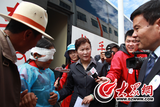 “謝謝!謝謝!”走下手術車,次旺卓嘎首先向在手術車外等待的領導和醫生們表達了感謝。在被問及手術的感覺時,次旺卓嘎告訴記者,手術剛剛進行時眼部還是有一丁點疼痛的感覺,但后來很快就沒有了,自己非常期盼著明天右眼能重新看到東西。“感謝山東的醫生,謝謝。”在丈夫的攙扶下,次旺卓嘎不住的朝人群點著頭。