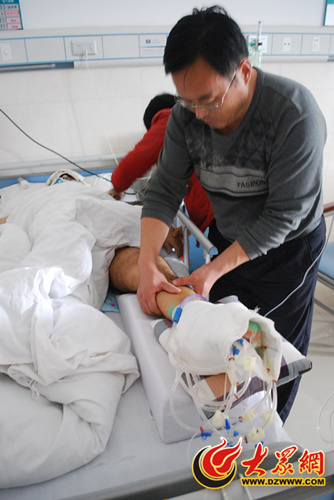 長時間的臥床容易引起血栓等一系列的并發癥, 但因為疼痛龔鈺犇四肢僵硬,不到一個小時床上的褥子就汗濕了,更別說要自己活動肢體了。為了防止并發癥,加快恢復,他的父親就不斷的給他按摩著身體,隔一個小時就要按摩二十分鐘。