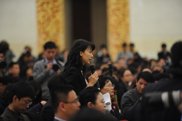 2012年3月2日15時,全國政協十一屆五次會議新聞發布會在人民大會堂三樓金色大廳召開,大會新聞發言人趙啟正向中外媒體介紹本次大會有關情況,并回答記者提問。圖為路透社記者提問。陳競超 攝