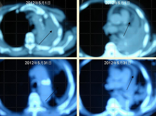 肺癌王XX采用 “董氏治癌法”治療前后CT對照變化