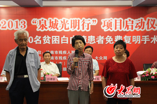 為幫助濟(jì)南市貧困白內(nèi)障患者重見光明,濟(jì)南市殘疾人福利基金會(huì)早在2010年便啟動(dòng)首期“泉城光明行”活動(dòng),為濟(jì)南市200名白內(nèi)障患者實(shí)施了免費(fèi)手術(shù)。2011年,第二期活動(dòng)將救助名額增至500人。截止2012年底,“泉城光明行”活動(dòng)已成功開展了三期,累計(jì)幫助1000多名貧困白內(nèi)障患者免費(fèi)實(shí)施了復(fù)明手術(shù)。為了讓更多的貧困白內(nèi)障患者從中受益,第四期“泉城光明行”項(xiàng)目免費(fèi)手術(shù)名額定為1000人。